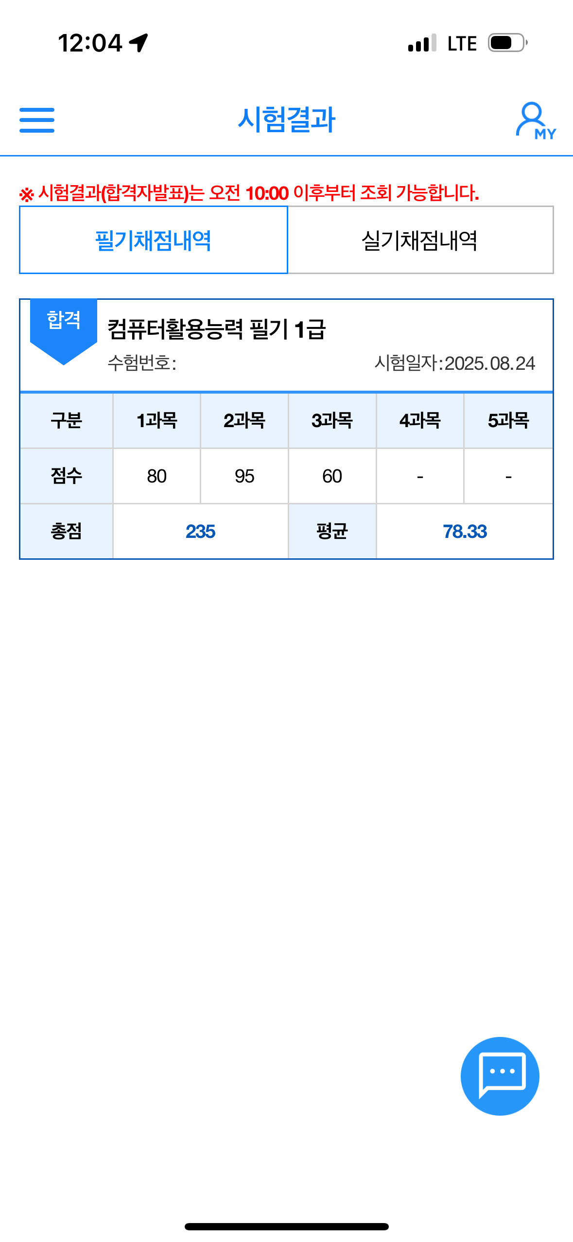 안녕하세요 저는 이번 방학 때 컴활 1급 필기를 먼저 합격하기 위해 책을 찾아보던 중 사람들이 시나공 책을 추천을 많이 해줘서 시나공 책으로 공부하게 되었습니다. 공부 기간은 한달 전부터 기본서 1회독을 하고 시험 치기 2주전에는 책에 딸려 있던 기출 문제집을 위주로 풀었습니다. 시험 일주일 전에는 잘못된 문장 찾기 200문제를 2회독 정도 했습니다. 놀랐던 건 시험 문제가 시나공 기출문제집과 잘못된 문장 찾기 200문제에서 똑같은 문제가 많이 나왔다는 것입니다. 덕분인지 필기를 한번에 합격할 수 있게 된 것 같습니다. 실기도 시나공으로 준비하겠습니다. 감사합니다.