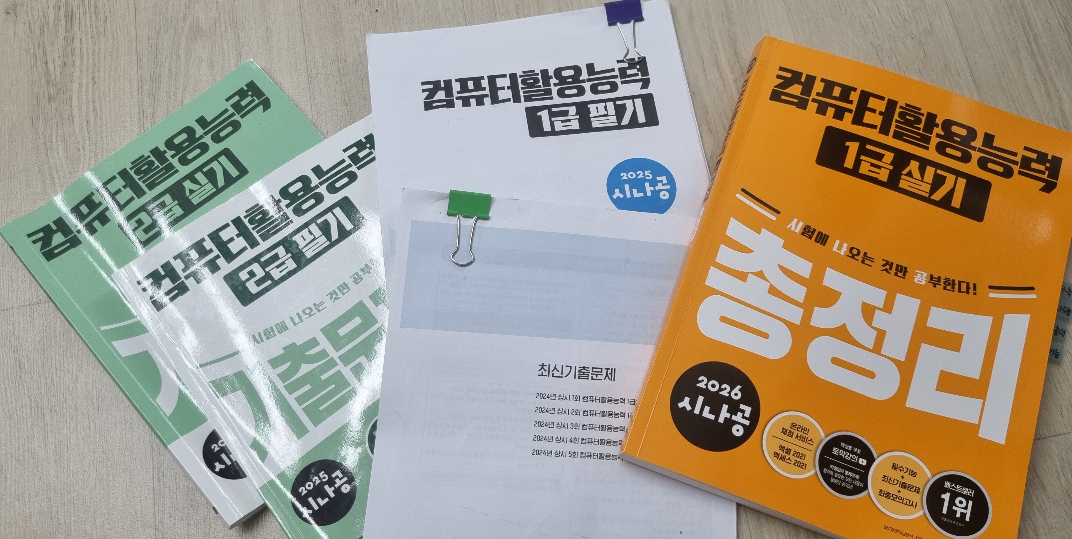 그래서 1급으로 필기를 급수 변경하고, 교재는 사지 않고 시나공에서 요약집 프린트하고,