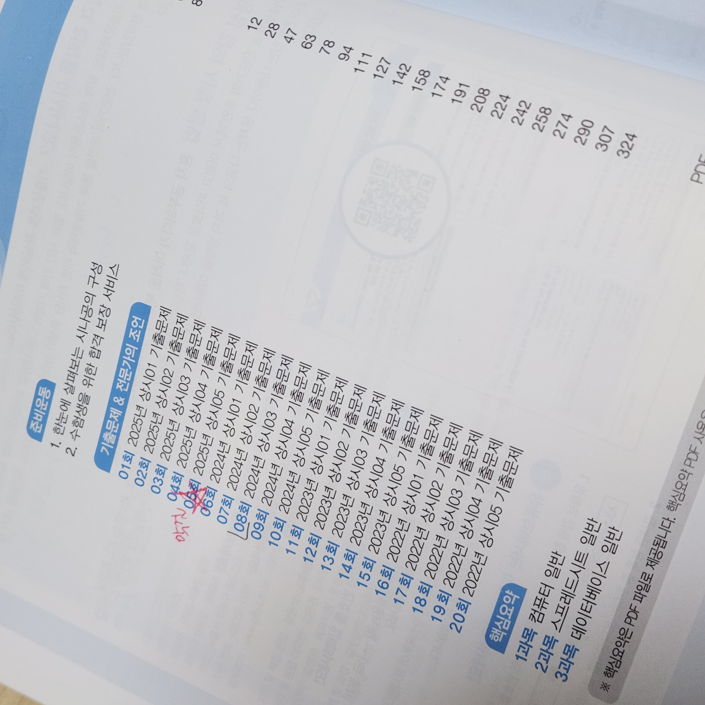 시나공*리자2025-12-03 14:11:54합격을 진심으로 축하합니다. 그럼요 그럼요~! 책에서 최신 기출문제를 많이 풀어보는 거 중요하죠~! 도움이 되었다니 기쁜 마음입니다. 합격 축하 선물은 문자로 보내드렸어요!