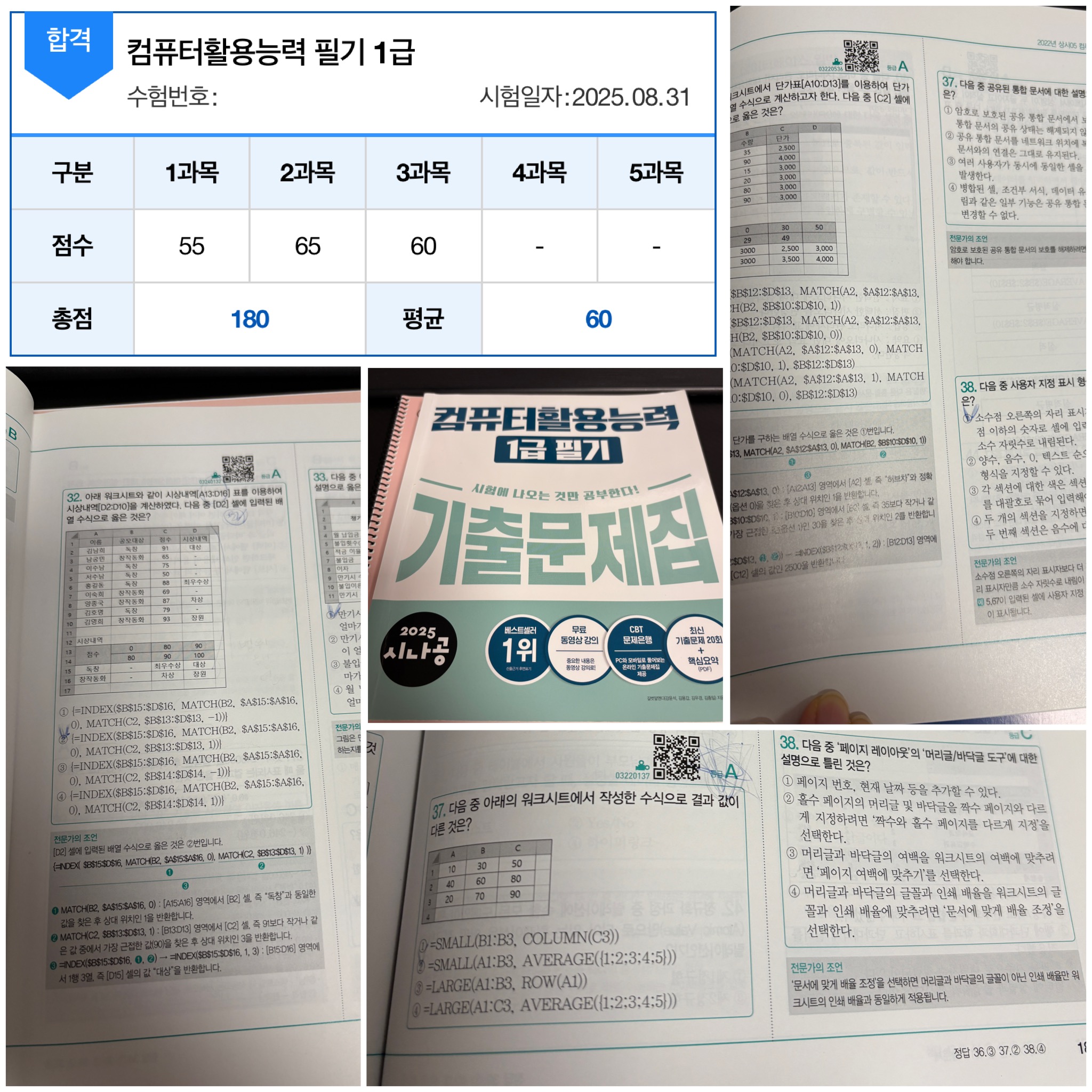 2025 컴퓨터활용능력 1급 필기 합격 후기