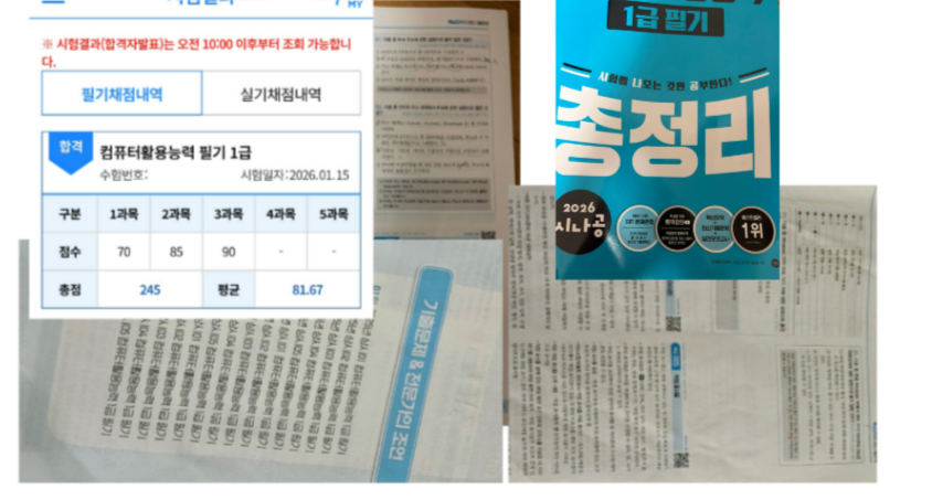 특히 컴활 1급 필기의 경우 과목별로 공부 난이도가 꽤 다르게 느껴졌습니다. 1과목은 기본적인 컴퓨터 일반 이론을 다루지만, 범위 자체가 상당히 넓어 개념의 양이 방대하다는 점이 가장 큰 부담이었습니다.