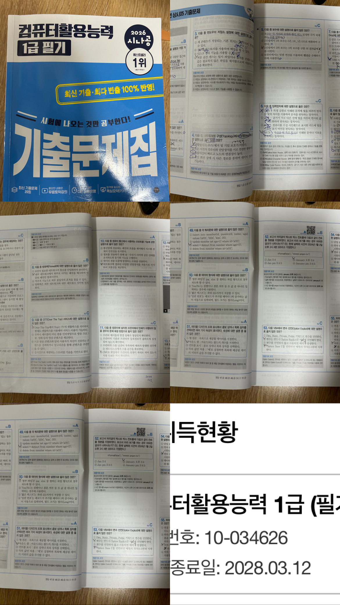 시나공*리자2026-03-26 15:00:14정말 감동적인 후기네요! 시나공 기출문제집 덕분에 2트 만에 컴플 1급 합격이라는 꿈을 이루셨다니, 응분의 수고에 박수를 보냅니다. 유튜브 강의와 시나공 기출 문제집의 시너지가 합격의 비결이었던 것 같습니다!