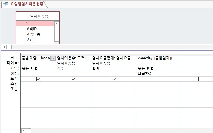안녕하세요. '요일별열차이용현황'이라는 쿼리를 만들려고 합니다.