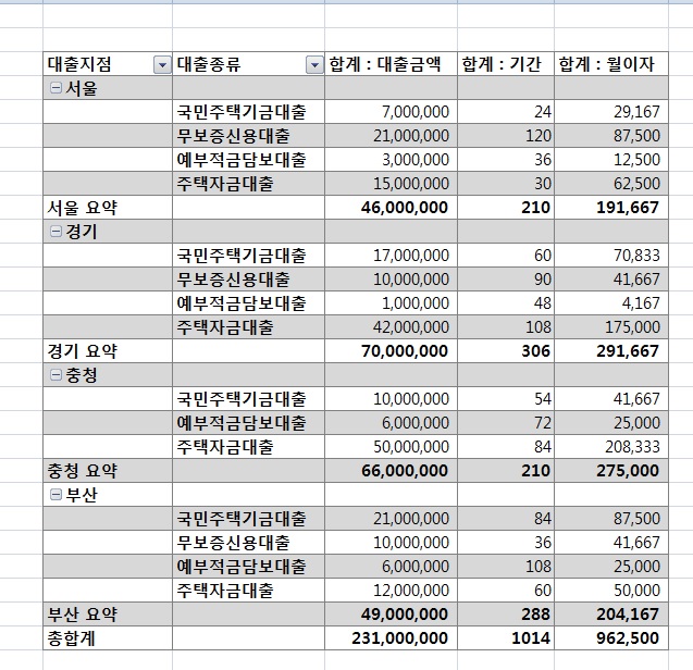피벗테이블 질문입니다