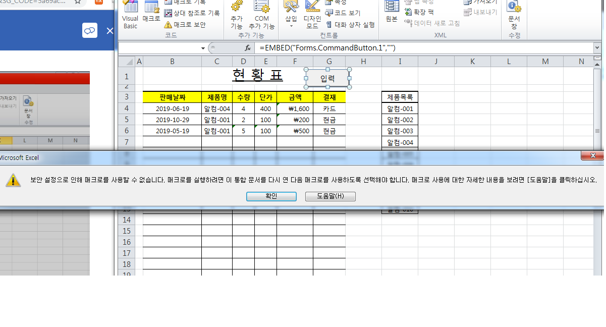 엑셀 보안설정을 아래 그림과 같이 변경하신 다음 연습을해봐주시길 바랍니다.