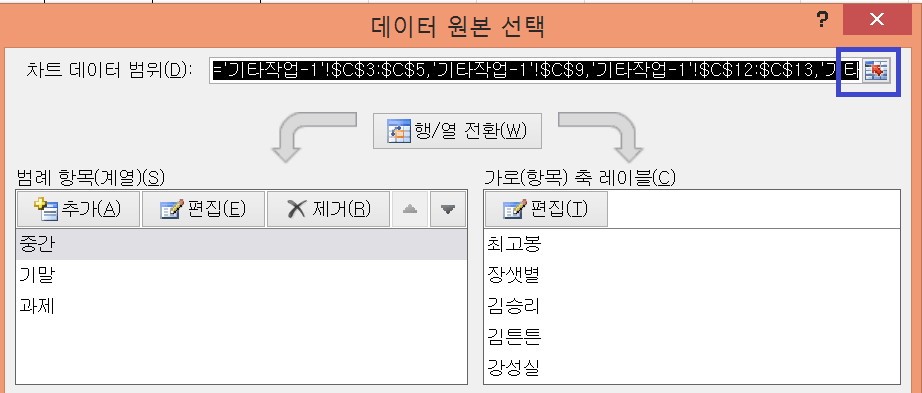 해설처럼 강성실의 데이터를 추가하면 최고봉 데이터 위에 강성실데이터가 들어가요..,,