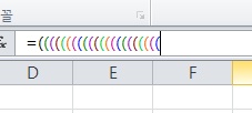 항상 엑셀을 사용하면 스샷과 같이 괄호에 색이 추가되어 수식을 짤 때 편했었는데 시험장에선 괄호가 다 검은색으로 나와서 당황했습니다.