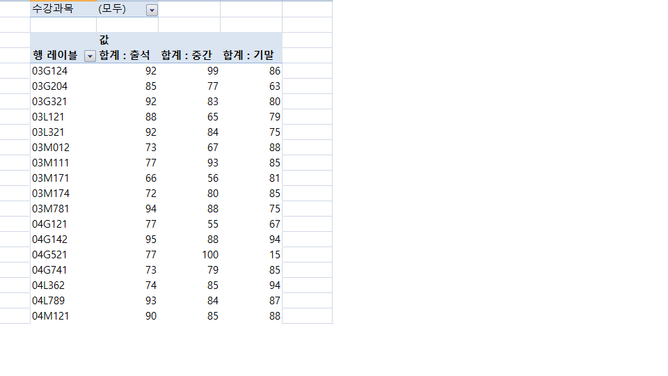 피벗테이블과 관련된 질문입니다.