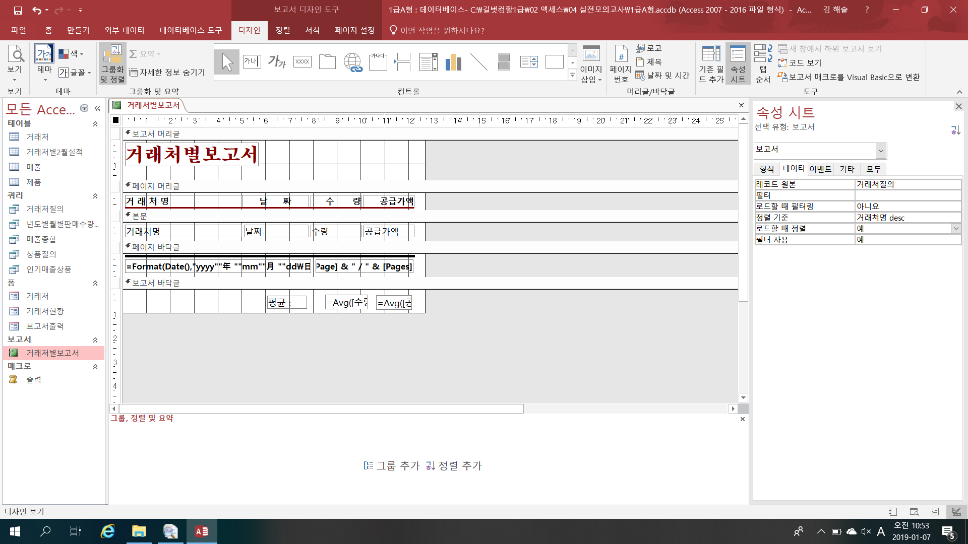 보고서는 주로 그룹화를 수행한 후 그룹된 내용 안에서 추가적인 정렬을 적용합니다.