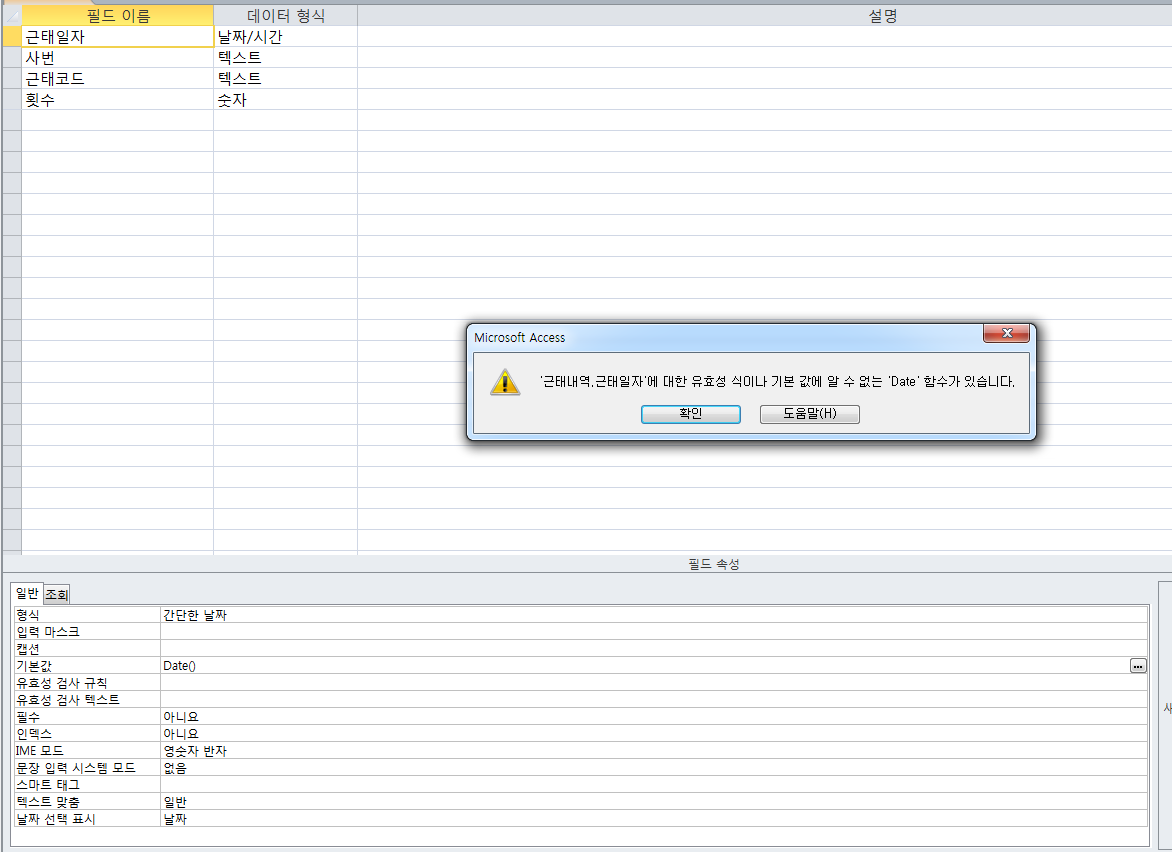 Date() 적고 저장하면 저렇게 뜨면서 저장이 안됩니다.