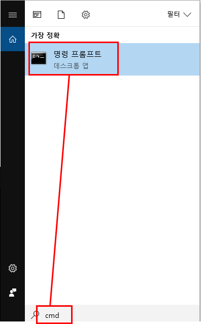 2. '명령프롬프트'를 열어주세요.
