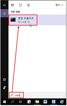 2. '명령프롬프트'를 열어주세요.