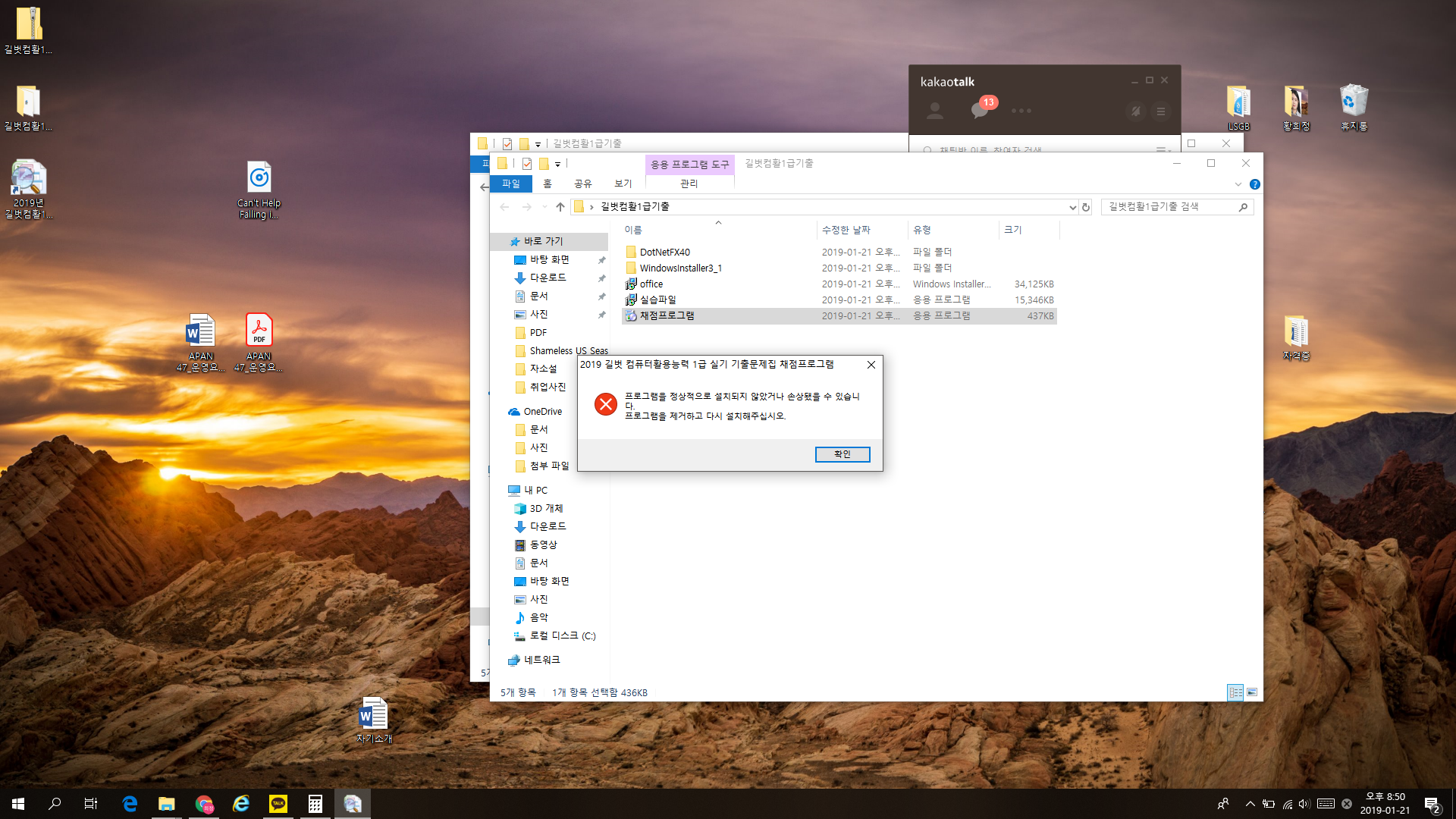 문의하신 오류메세지는 채점프로그램 설치 중 설치파일이 누락되 었을 경우 나타날 수 있습니다.
