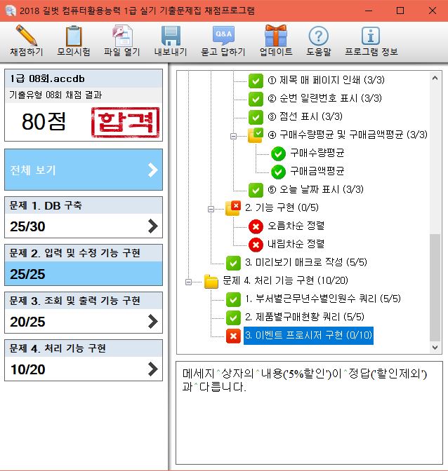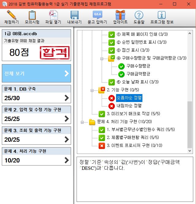 정렬과 이벤트 프로시저도 정확히 실행됩니다. 정답입니다.