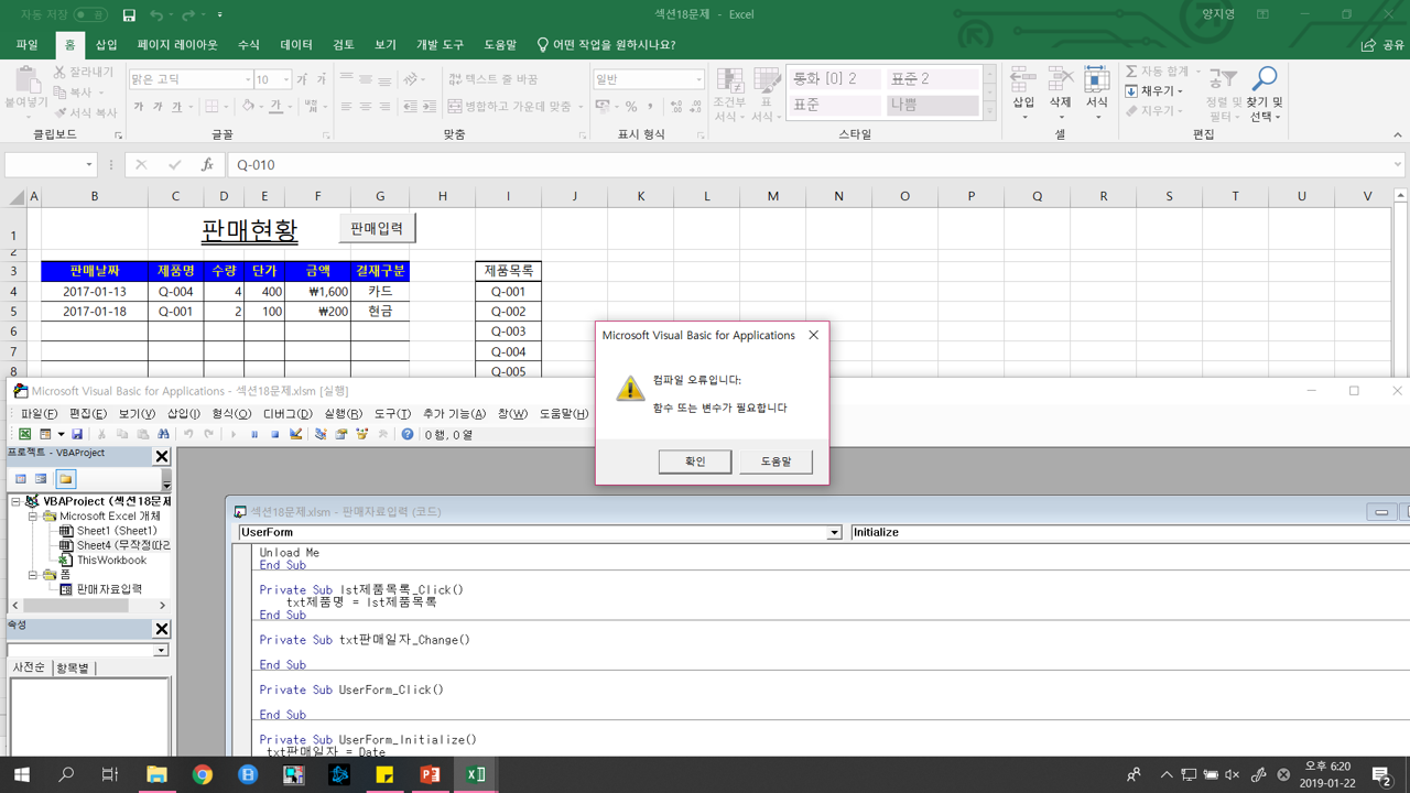 cmb결재형태.Additem 속성에는 =을 사용하지 않습니다.
