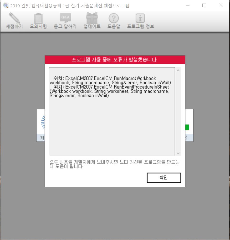 액세스는 채점이 잘 되나 엑셀만 계속 채점 오류가 납니다. 재설치를 해도 같은 오류만 뜹니다