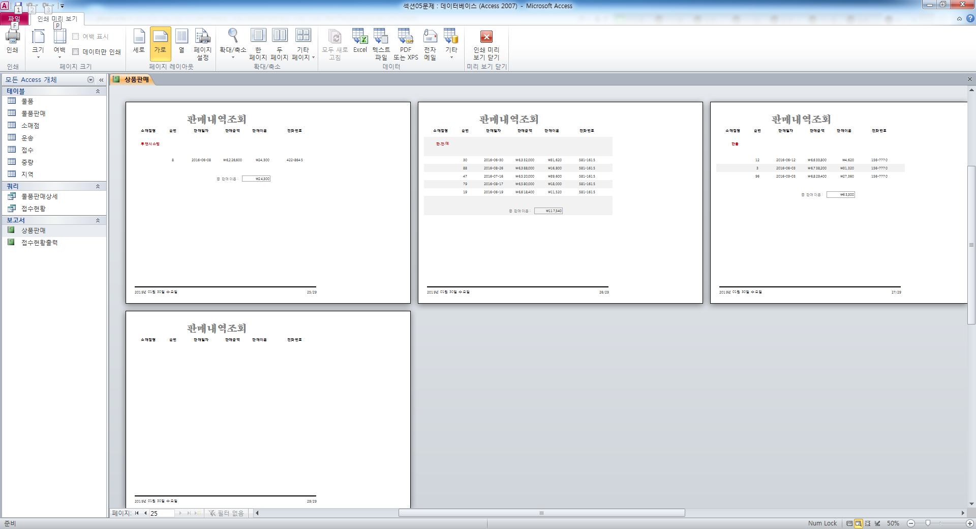 28페이지까지는 결과가 잘 나오는데 29페이지에는 페이지 머리글이 보이고 그룹 내용은 없이 비어있는채로 나옵니다.