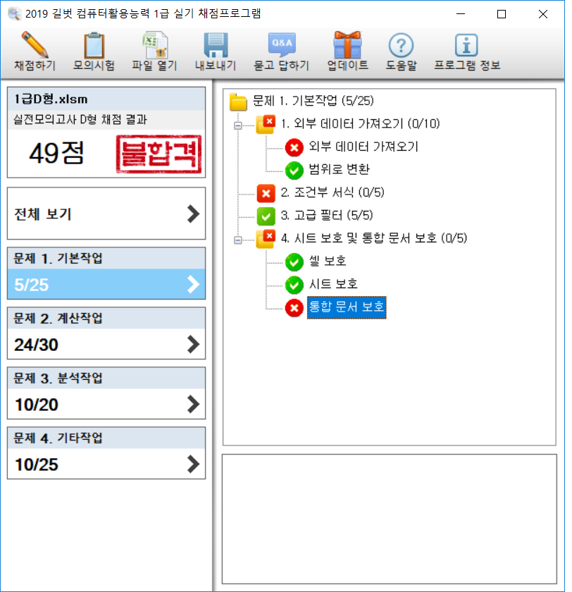 채점프로그램 실행후에 틀린부분이 밑에 창에 해설이 나와야 하는데 나오지 않네요 채점프로그램 재설치도 해봤는데 똑같은데 왜그러죠???