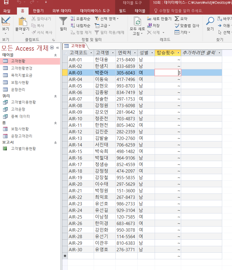 텍스트로 지정된 '성별' 필드에서 테스트해 보세요.