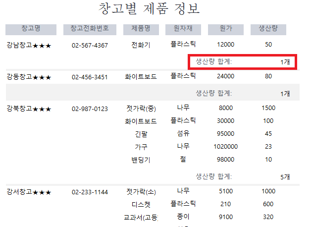 창고명 바닥글의 'txt합계' 컨트롤에 생산량의 합계가 표시되도록 ~