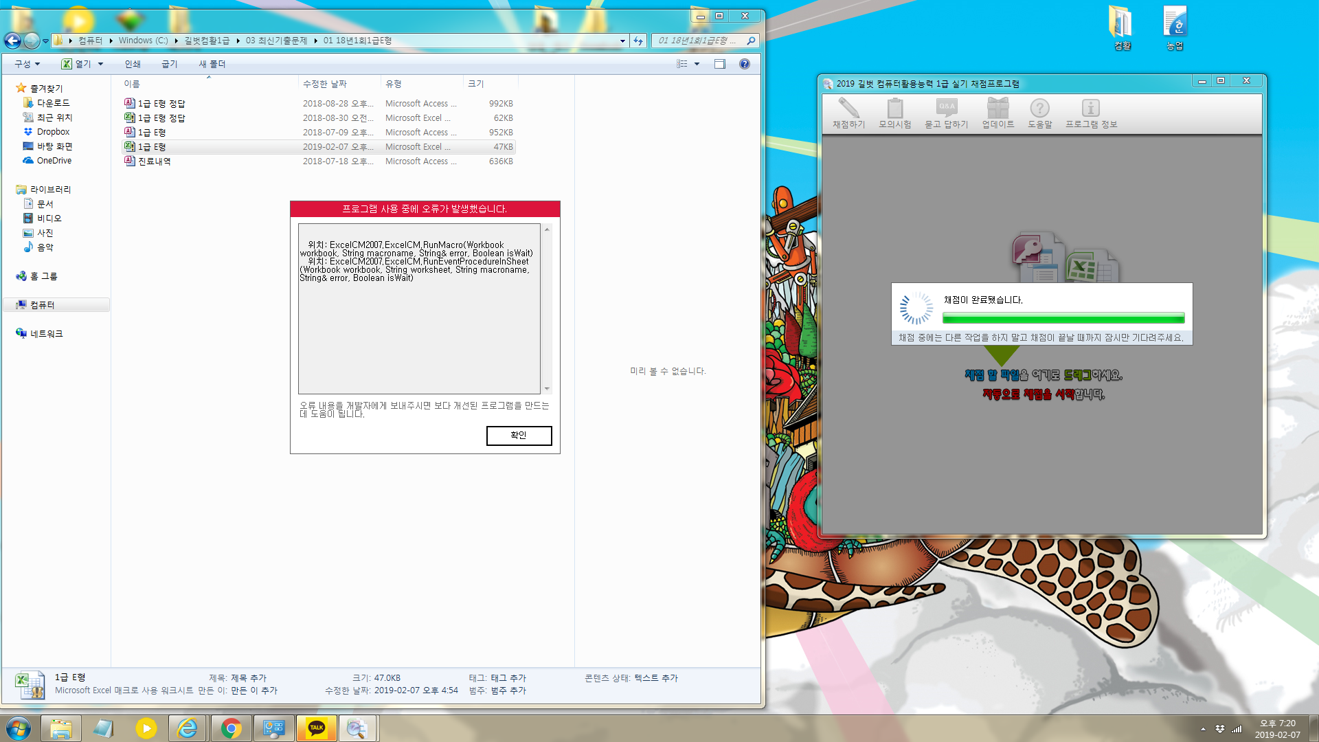 채점프로그램은 오피스 2010에 맞춰 만들어진 프로그램으로 오피스 365에서는 프로그램을 사용하실 수 없습니다.