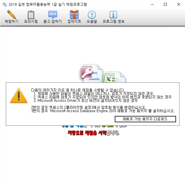 * 정답파일은 암호가 설정되어 있지 않아 채점에 사용할 시 해당 오류가 발생합니다.