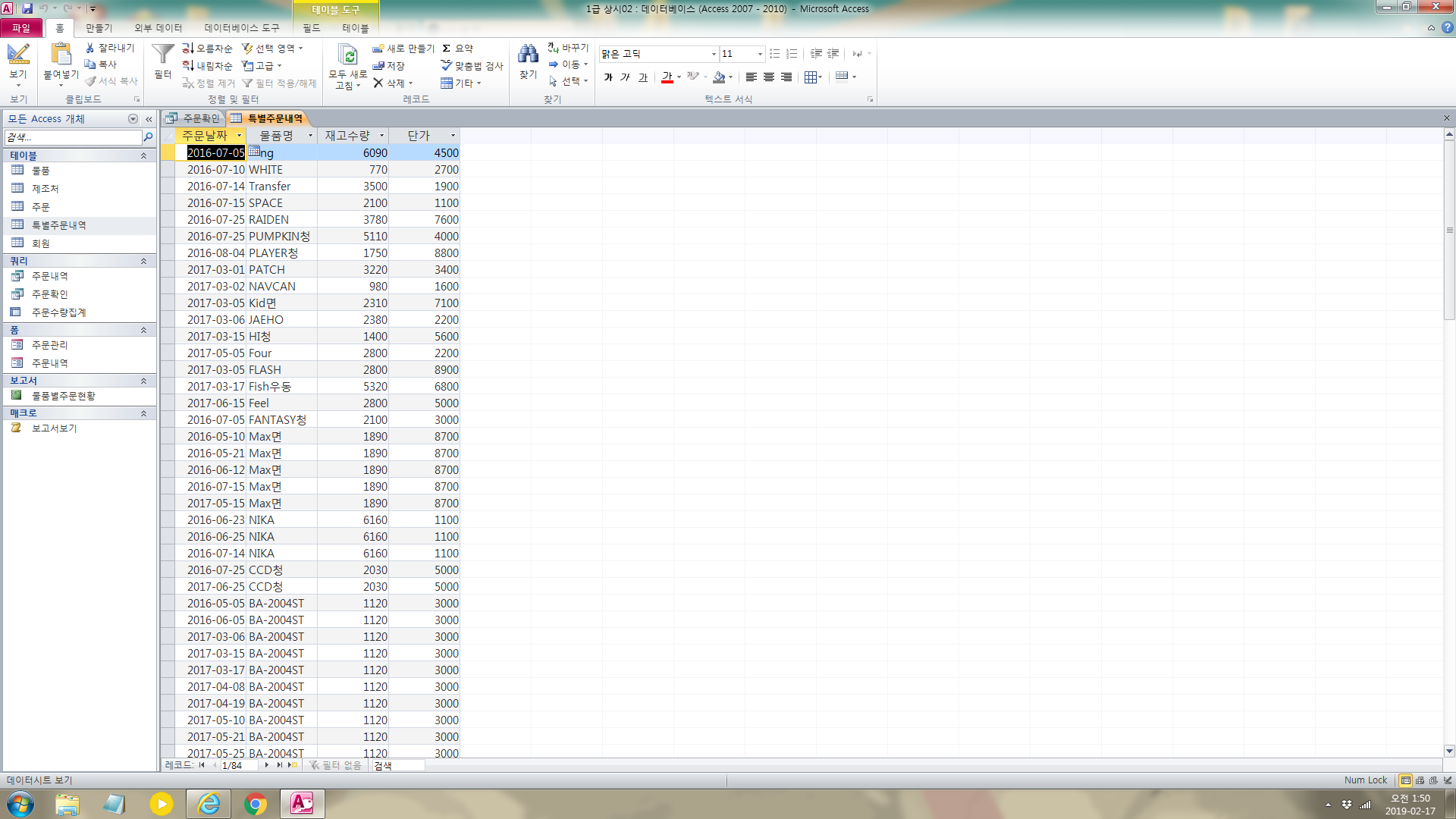 원본 데이터가 되는 <주문> 테이블의 정렬이 정확히 되어 있는지 확인해 보세요.