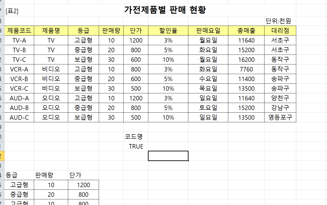 수식으로 조건을 넣었기 때문에 원본 데이터의 필드명과 다른 '코드명'으로 지정한 것입니다.