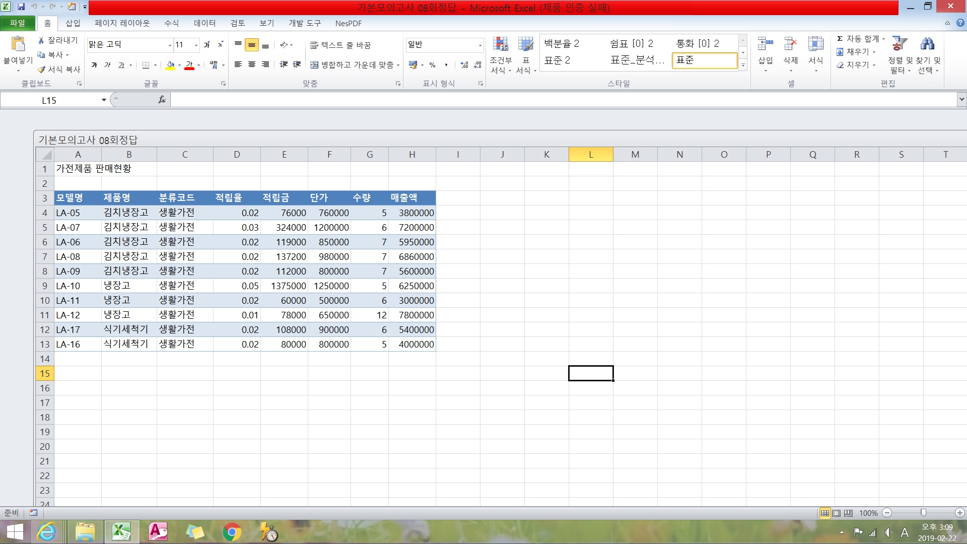 액셀 기본모의고사 8 정답파일 오류 뜹니다