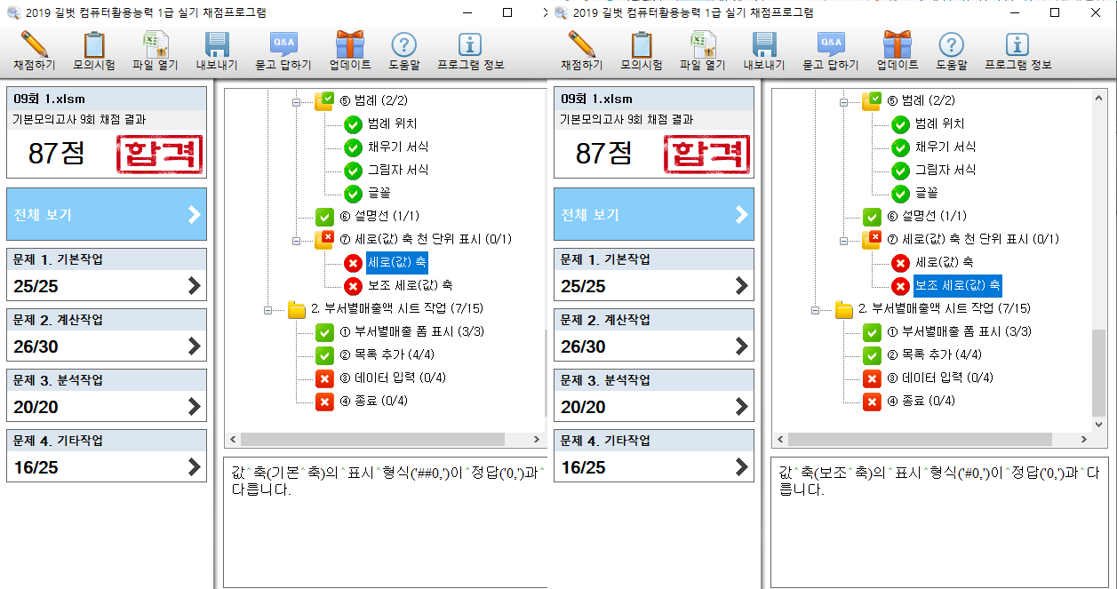 엑셀 기본모의고사9회 문제4 1-7번 질문이요~