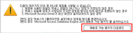 > [Microsoft Access Database Engine] 다운로드 바로가기