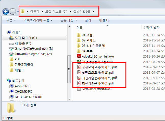 cd를 설치하면 생기는 길벗컴활1급 폴더의 바탕에 보면 pdf 파일로 들어 있습니다.