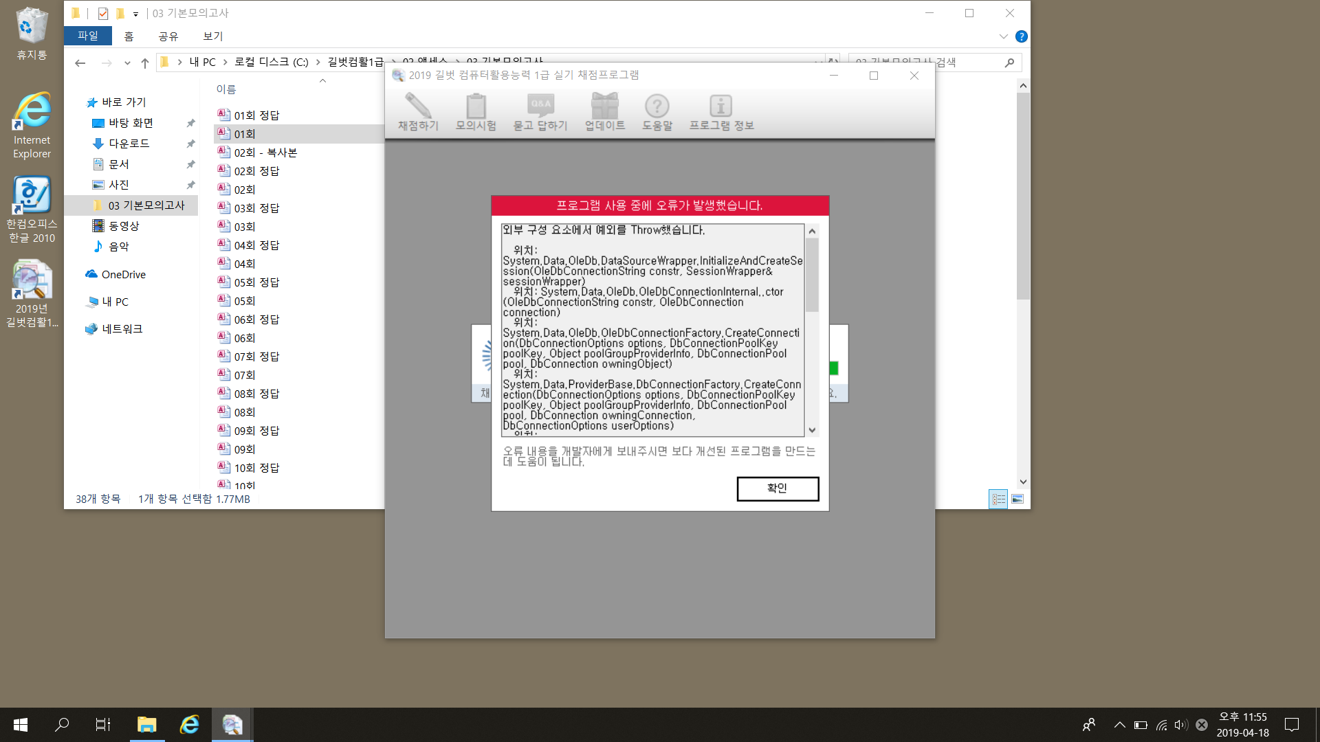 액세스 기본모의고사 파일을 채점하려고 하니까 오류가 발생했어요