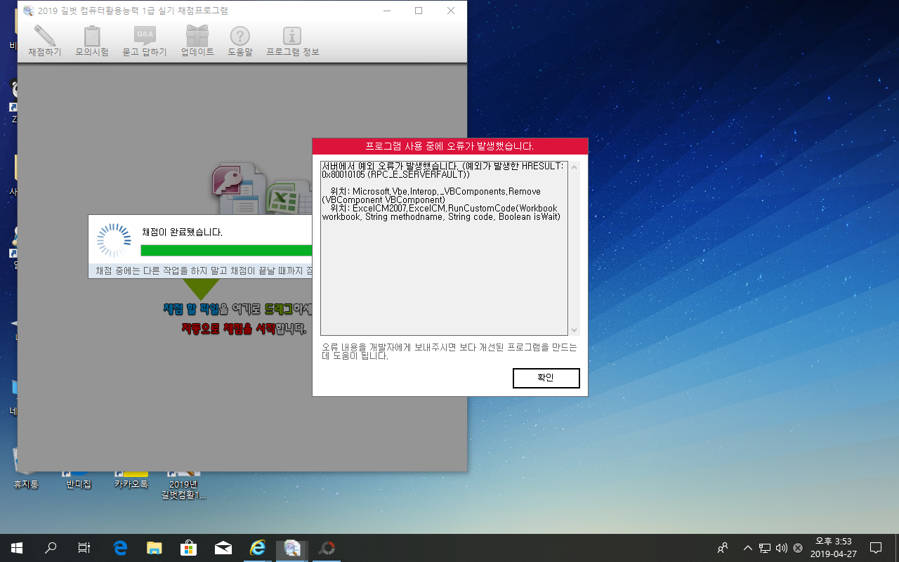엑셀 채점프로그램 오류
