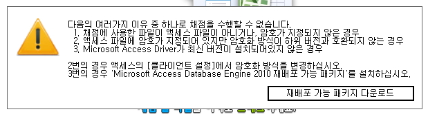 문제가 발생한 원인이 안내 창에 있는 1번과 2번의 이유로 문제가 발생한 것일 수 있습니다.