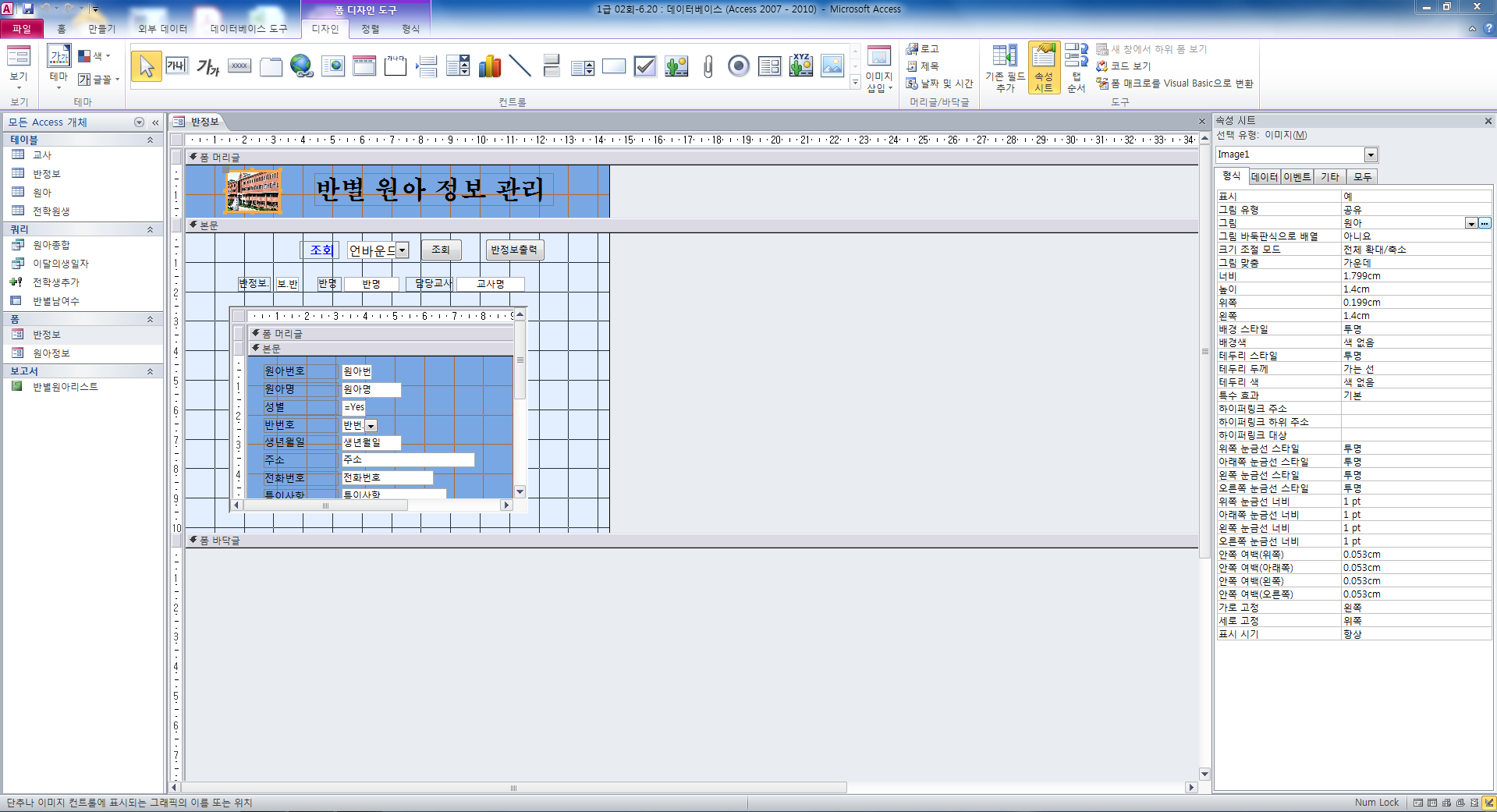 276쪽 2번에 1번에 1번 폼머리글에 그림삽입하라는 문제요 밑에 처럼 하면 답이 틀린건가요?