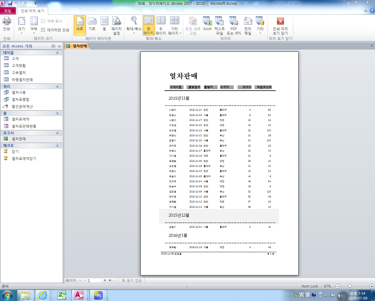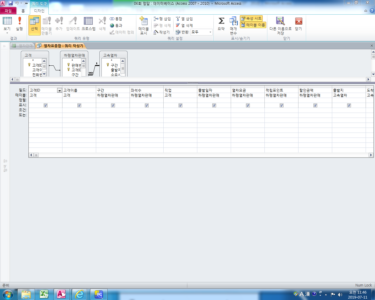 레코드 원본인 열차표종합 쿼리가 정답 파일과 동일한지 비교해 보시구요.