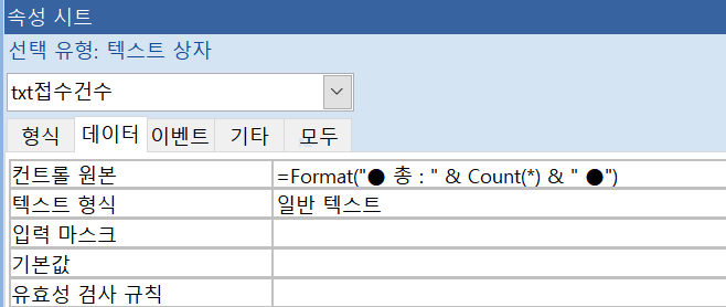 문제2-5에 txt접수건수에 컨트롤 원본을 이렇게 썼는데 결과값은 똑같이 나왔지만 채점프로그램에서는 틀리다고 나왔습니다