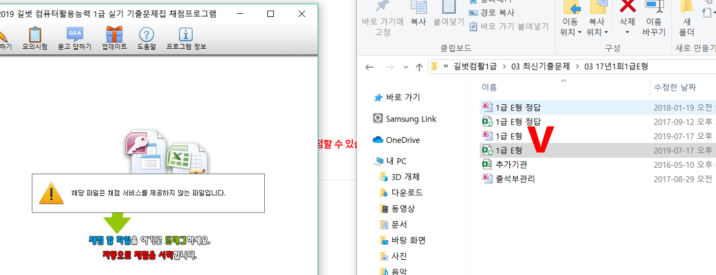 문의하신 도서의 채점프로그램은 '2019 길벗 컴퓨터활용능력 1급 실기 채점프로그램' 입니다.