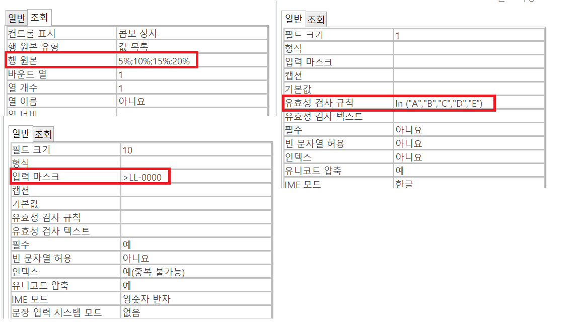 입력마스크, 유효성검사 규칙, 행원본을 각각 어떨 때 사용하는 건지 정확히 모르겠습니다.