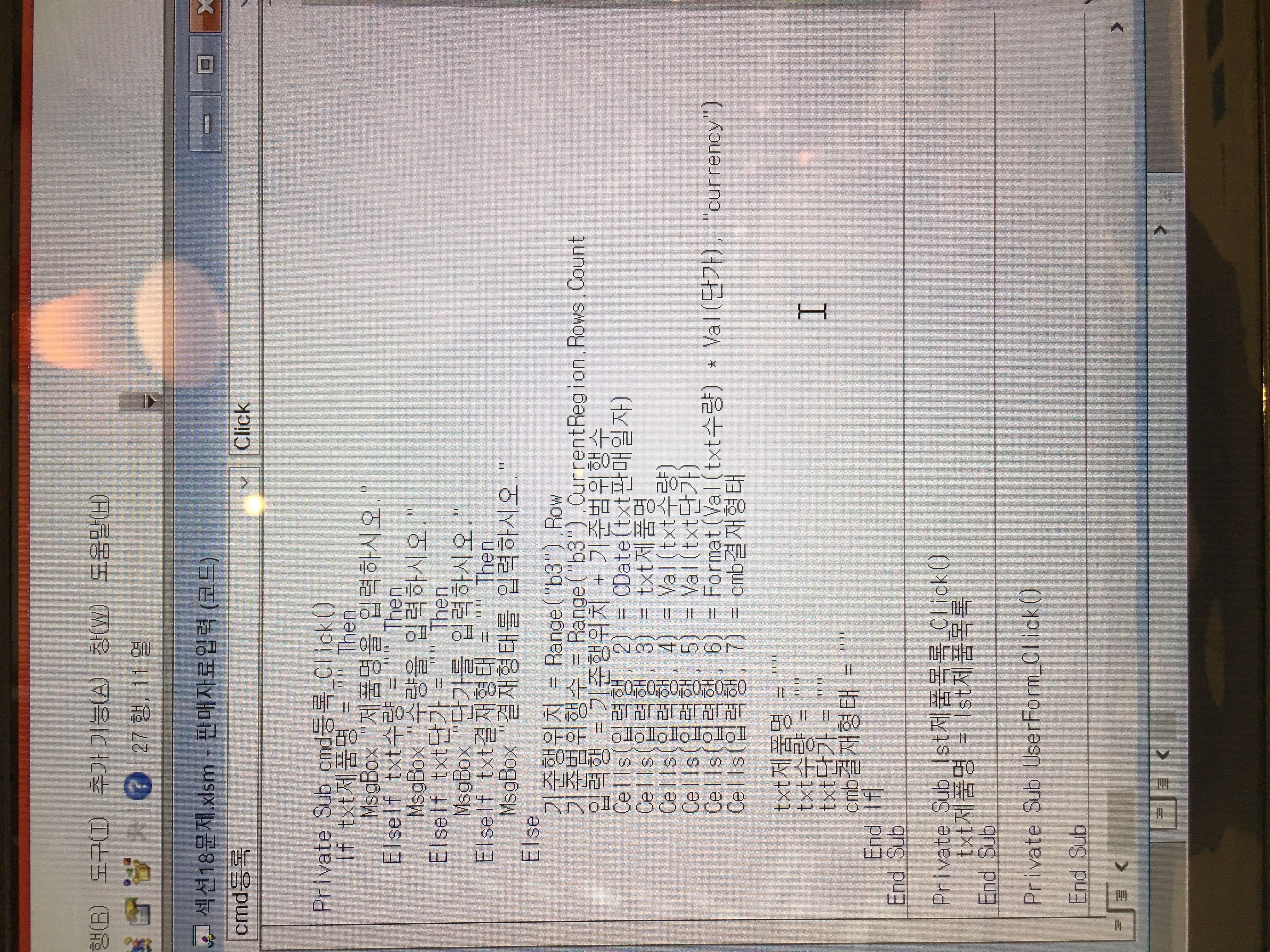 txt제품명, txt수량, txt단가, cmb결재형태는 폼에 존재하는 컨트롤입니다.