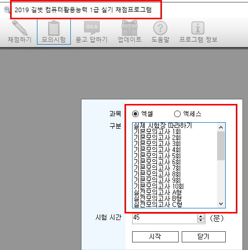 채점프로그램에 있는 모의시험을 보려하는데 해당되는 문제집은 어디있나요?