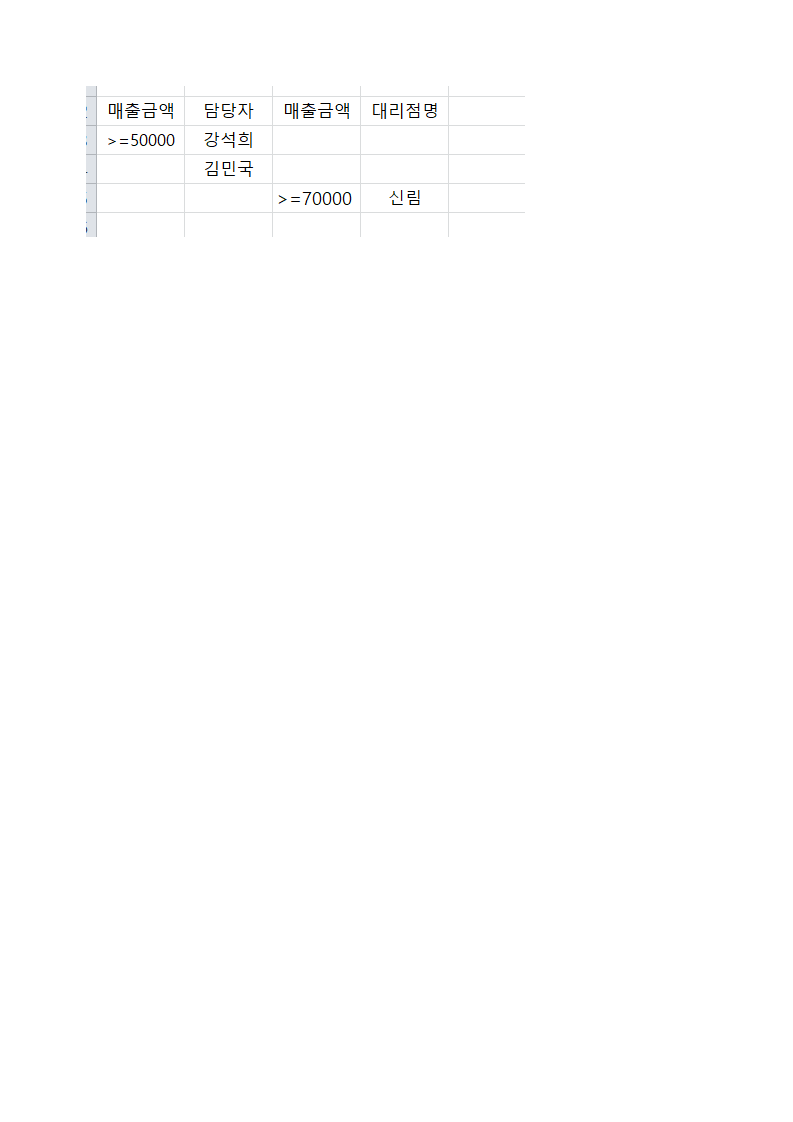 김민국에 대해서도 매출금액이 >=50000 인지 확인해 주셔야 문제의 지시사항에 맞는 것입니다. 수정해 주세요.