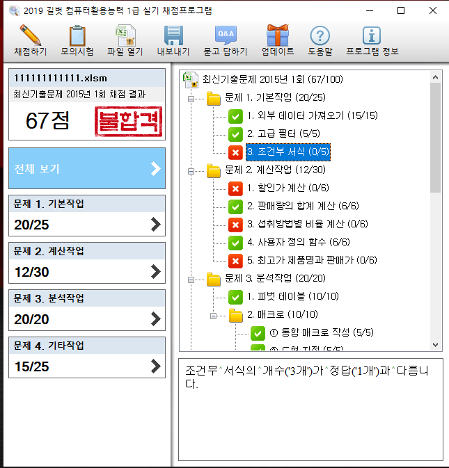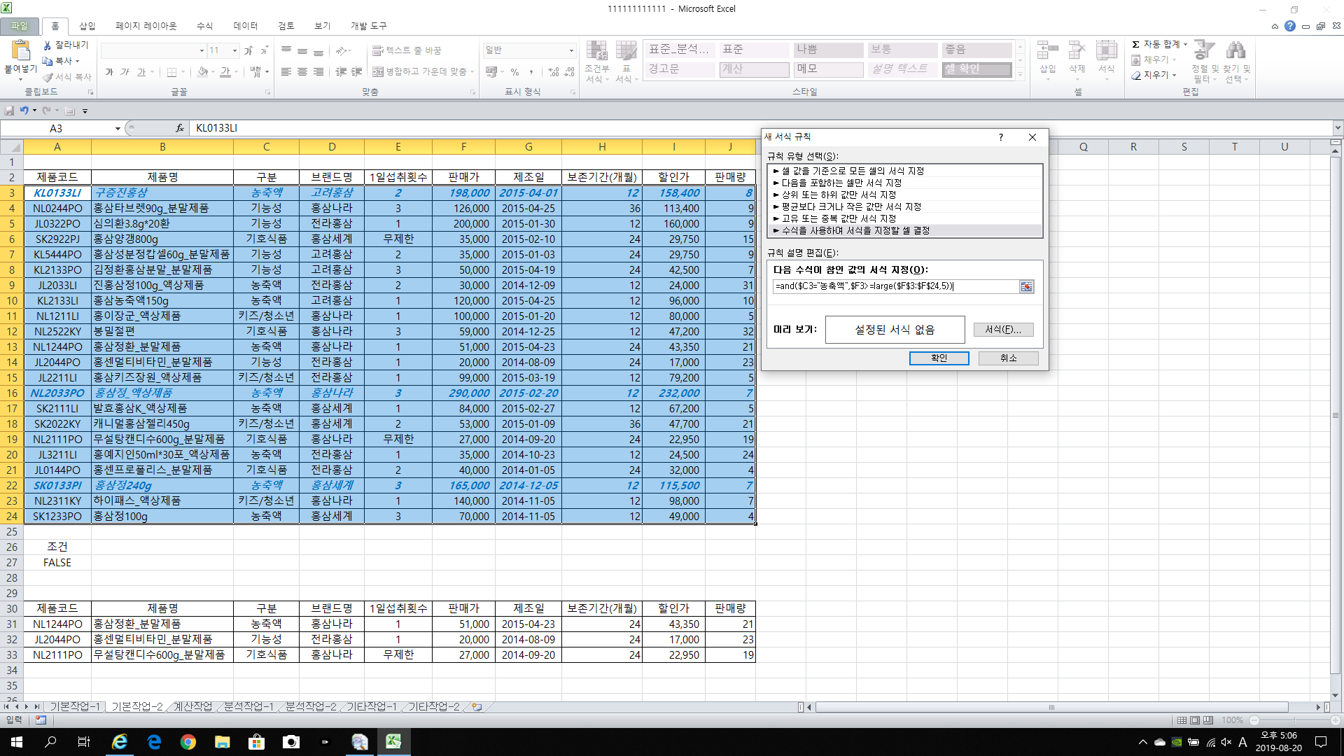 2015년 1회 컴퓨터활능력 1급 실기(엑셀) E형중 조건부서식에