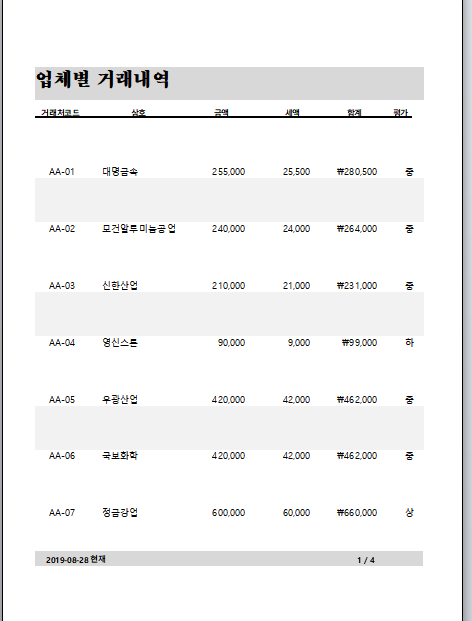 그런데 거래처코드순으로 오름차순으로 정렬을 하면 저렇게 중간에 회색 블럭이 생기는데 왜 그런 것인가요?