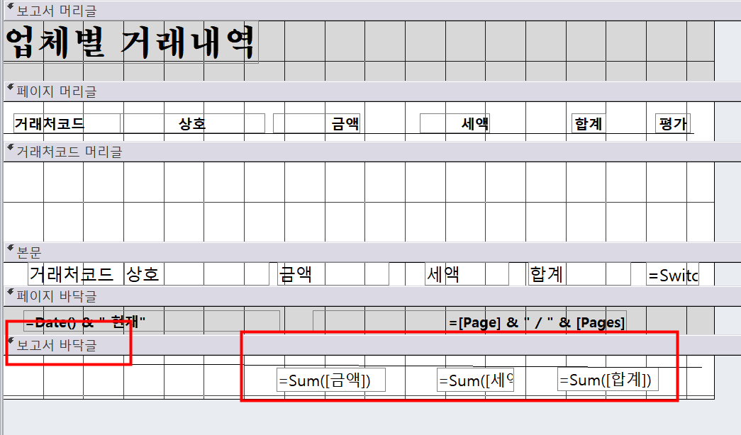 그리고 텍스트 상자를 넣어 보고서 바닥글을 완성 했는데 화면상에서 보이지 않습니다.. 왜그런것인가요?