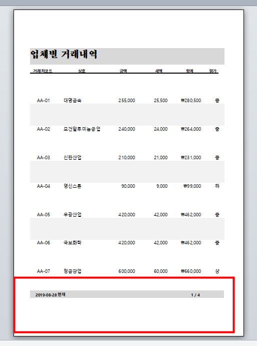 거래처코드의 머리글 영역을 보이지 않도록 제거해 보세요.