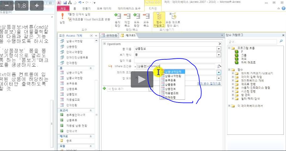 액세스에서 다음처럼 도움말이 나오려면 어떻게 하나요?