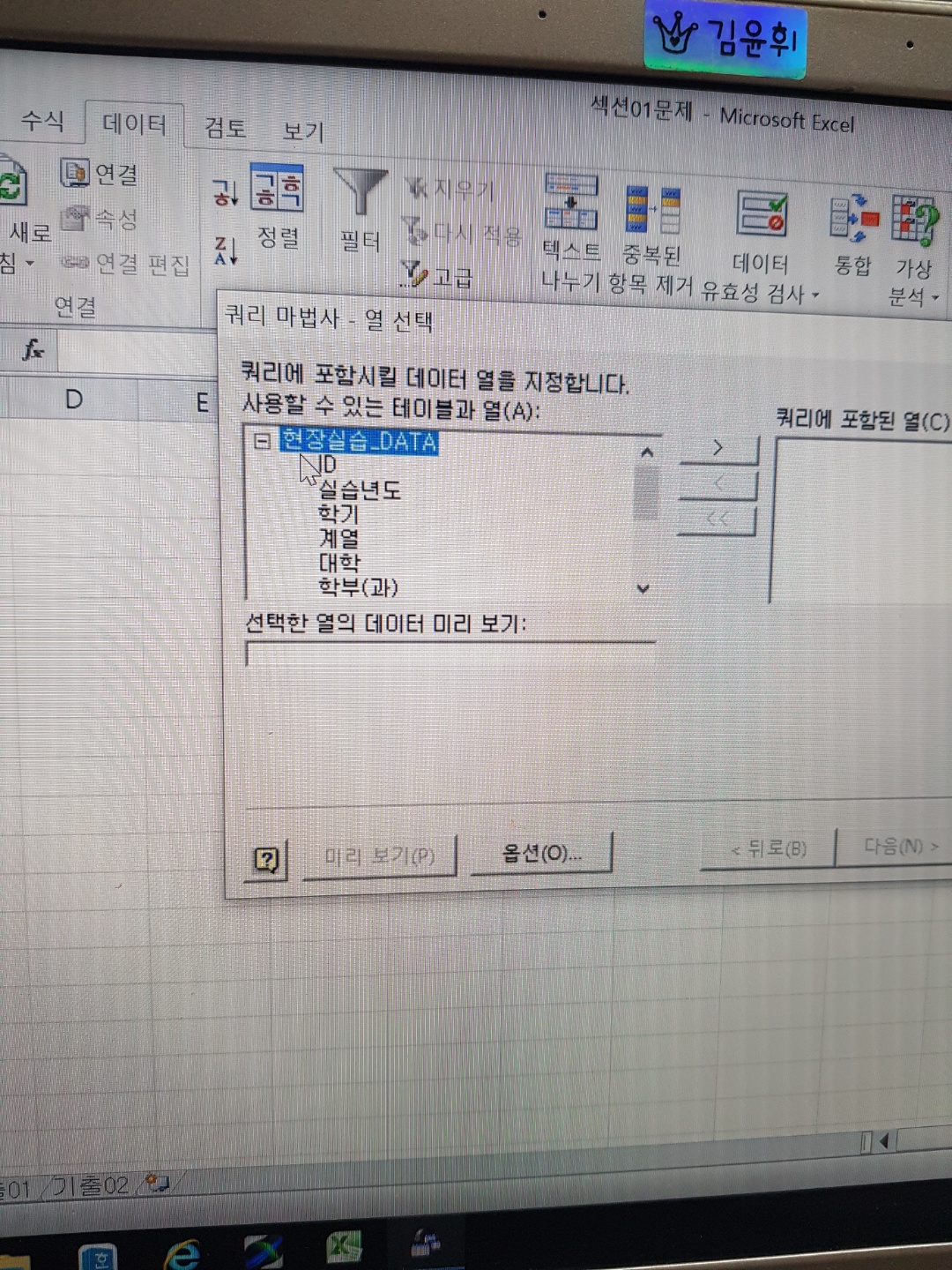 해당 문제는 Microsoft Query 메뉴를 통해 작업하셔야 합니다.