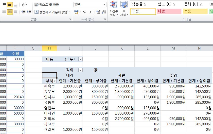 첨부된 파일과 같이 저는 별 신경쓰지 않고 파란색 영역인 [H4],[H5]까지 한 번에 드래그해서 정렬하다보니